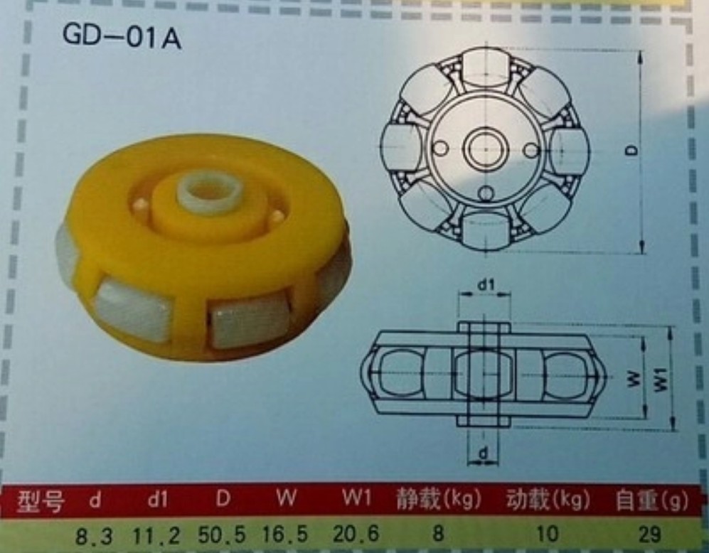 Bánh Đa Hướng Omni GD-01A 8.2x50.5MM được sử dụng cho các thiết kế Robot chuyên nghiệp, cần độ linh hoạt, chuyển hướng nhanh, bánh có cấu tạo