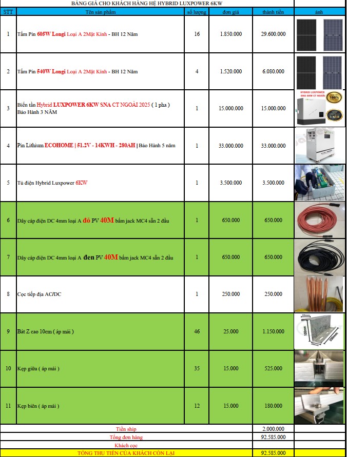 Combo 3 10kWp (18 tấm pin 550W + inverter 10kW) Biệt thự, doanh nghiệp vừa Có thể nâng cấp thêm pin 10kWh