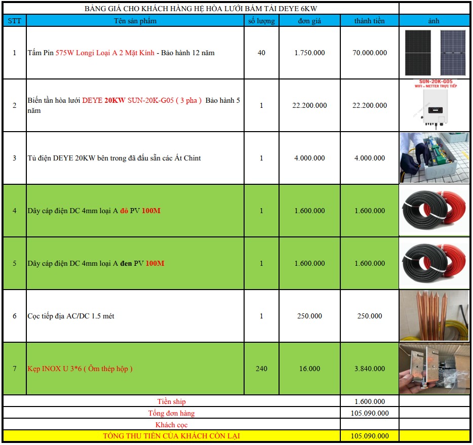 • Công suất: 3kW – 10kW (tùy nhu cầu)