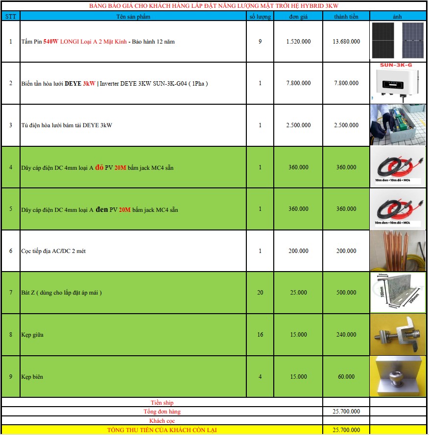 • Công suất: 3kW – 10kW (tùy nhu cầu)