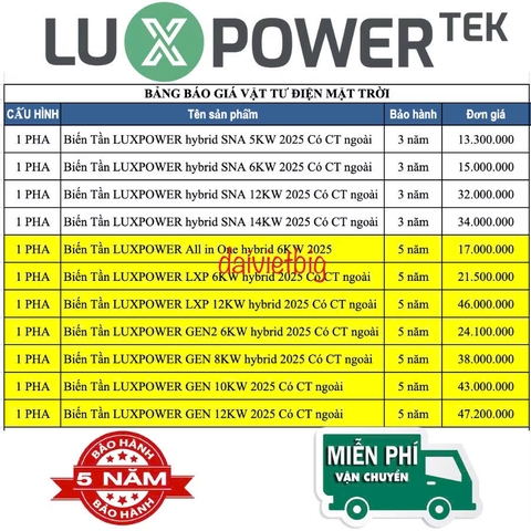 HÀNG CHÍNH HÃNG Luxpower VN PHÂN PHỐI BẢO HÀNH 5 năm TẠI TRUNG TÂM BẢO HÀNH HÀ NỘI VÀ HỒ CHÍ MINH