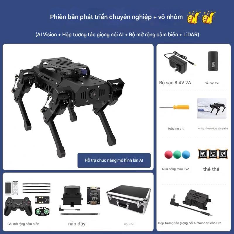 (Hỗ trợ AI Thị giác + Giao tiếp giọng nói AI + Điều khiển đa nền tảng + SLAM tạo bản đồ)