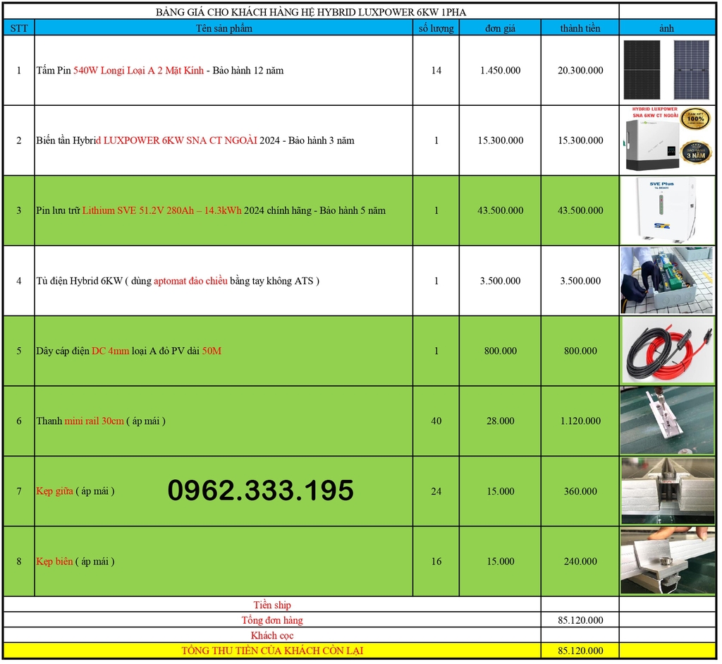 Báo giá NLMT hybrid 12kw 3pha 22.03.2025