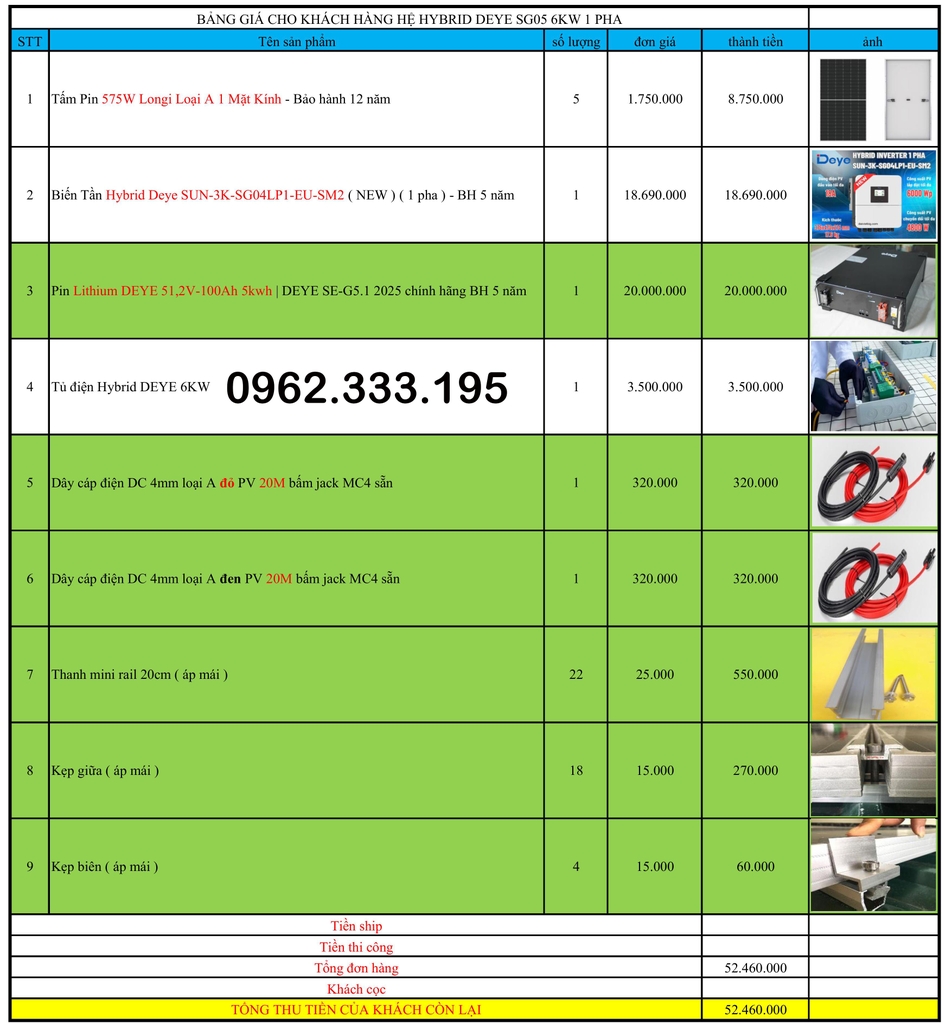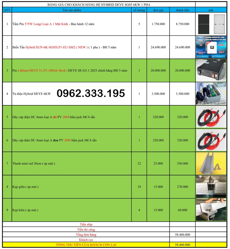 Báo giá NLMT hybrid 6kw 22.03.2025