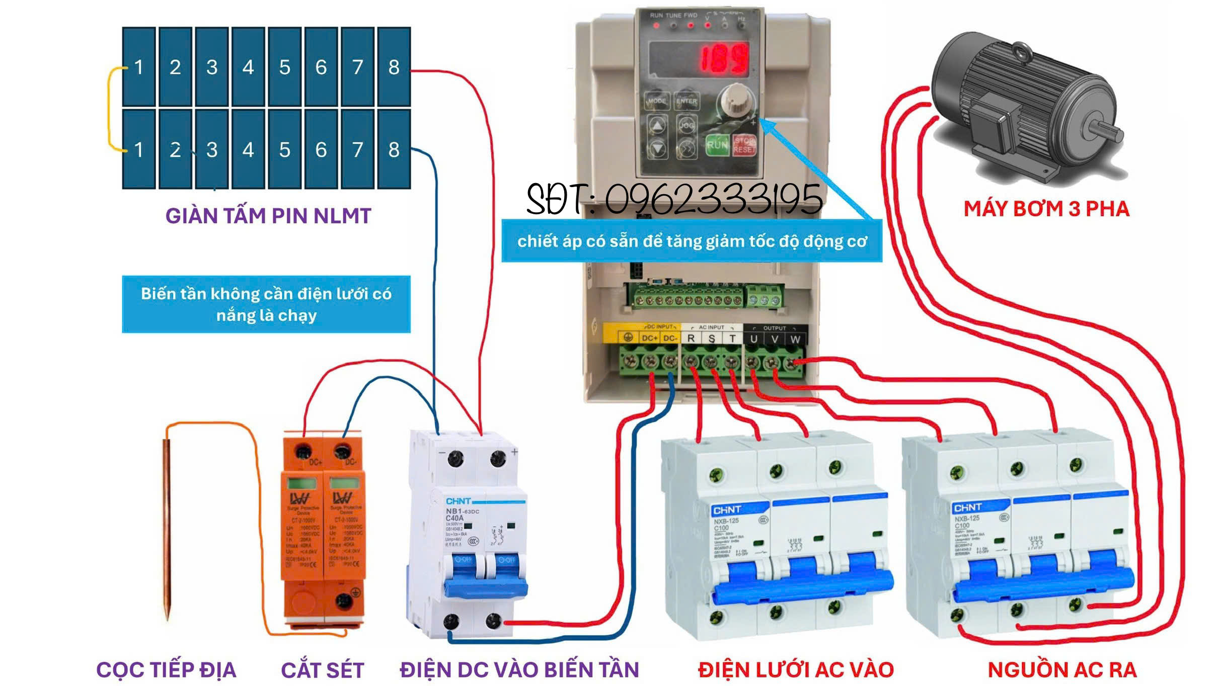 Sơ Đồ Đấu Nối Hệ Thống Điện Năng Lượng Mặt Trời Cho Biến Tần Bơm Nước