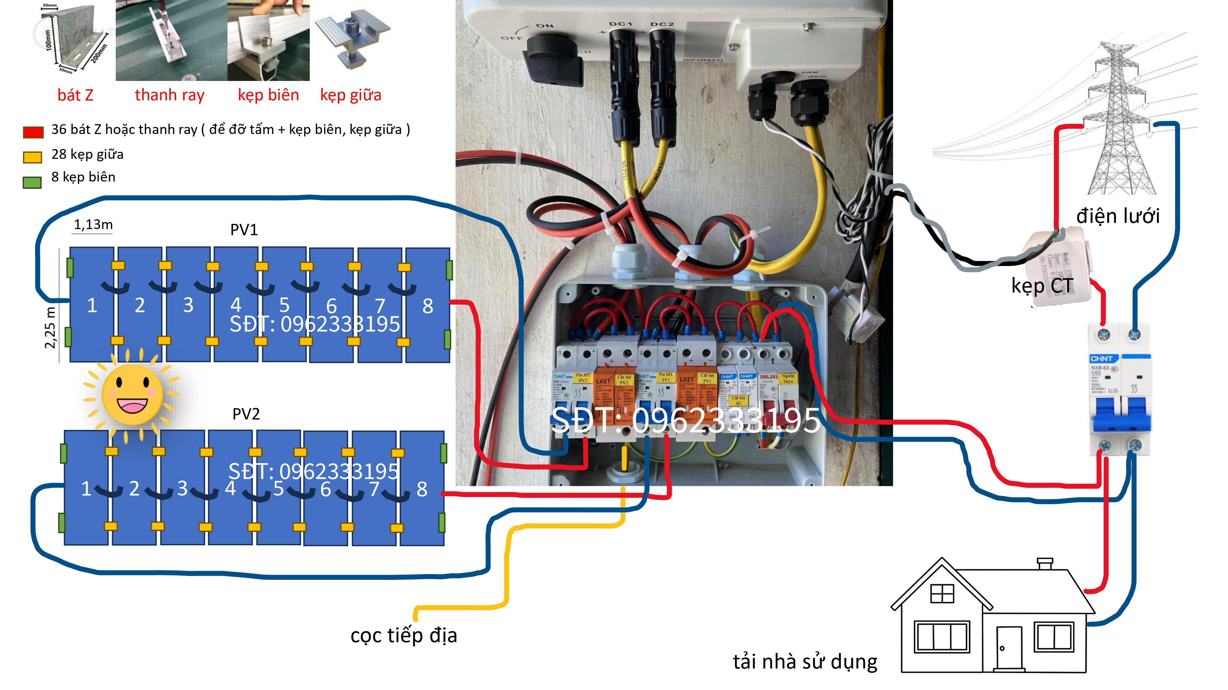 | Bộ điều khiển bám tải (nếu dùng) | Đảm bảo điện mặt trời chỉ cung cấp đúng tải tiêu thụ nội bộ |