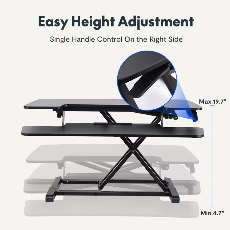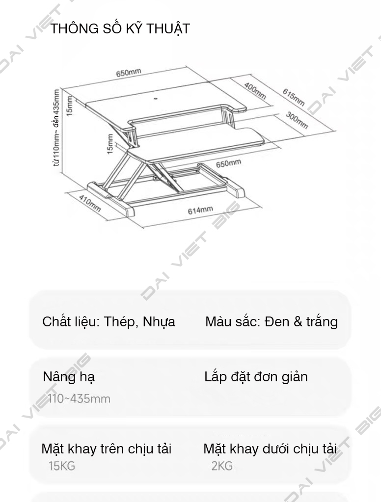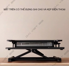 1/ Tải trọng bàn chuyển đổi độ cao lên đến 15kg có thể chịu được sức nặng hai màn hình và cả bàn phím. Độ cao điều chỉnh trên mặt bàn từ 119mm đến 500mm phù hợp cho bạn cả khi đứng và ngồi làm việc.