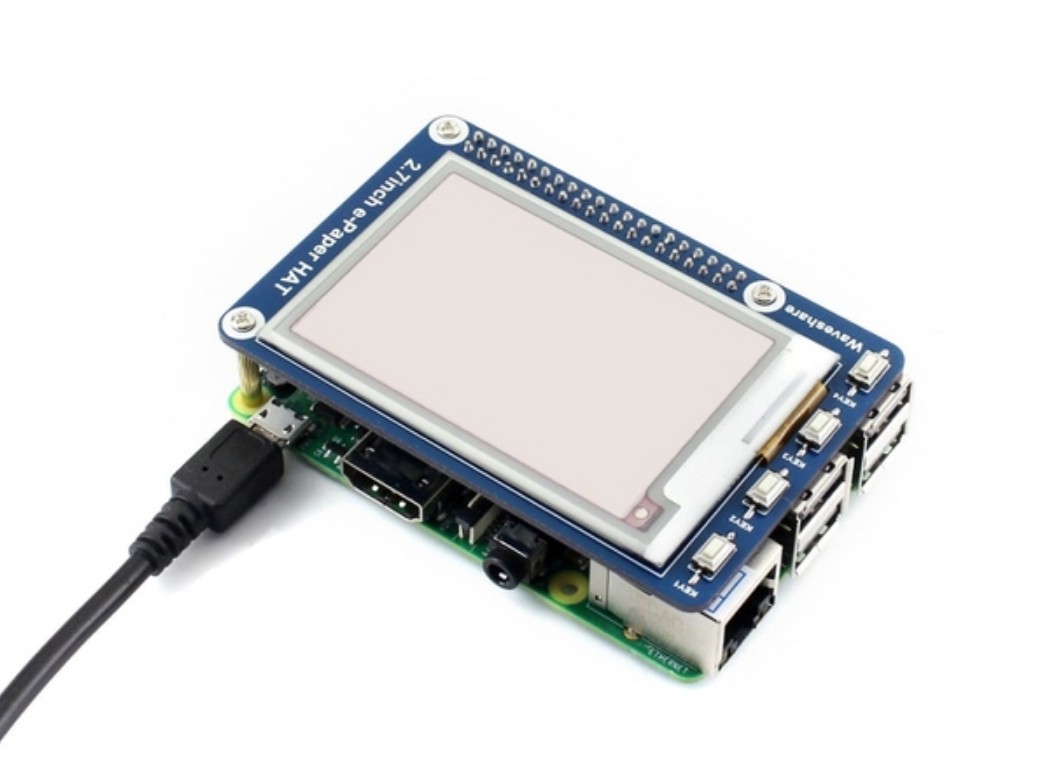 - Model: Waveshare 2.7 inch E-Ink display HAT for Raspberry Pi, three-color (B).