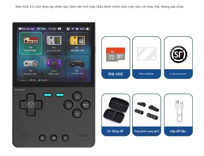 Hỗ trợ thẻ nhớ mở rộng: Có khe cắm thẻ TF (Micro SD) chứa hàng nghìn game sẵn, dễ dàng tải thêm trò chơi mới.
