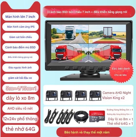 Máy ghi hình lái xe tải 12v, 24v【Bốn hướng】Phiên bản siêu trong suốt 7 inch + cảnh báo điểm mù + 64G