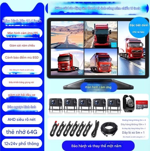 Máy ghi hình lái xe tải 12v, 24v【Điều khiển năm hướng】Màn hình cảm ứng 10 inch + cảnh báo điểm mù + báo động bằng âm thanh & ánh sáng + 64G