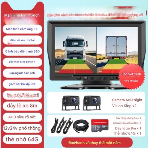 Máy ghi hình lái xe tải 12v, 24v【Ghi hình kép】Màn hình 10 inch Ultra HD+Cảnh báo điểm mù+64G