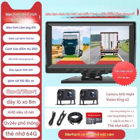Máy ghi hình lái xe tải 12v, 24v【Ghi hình kép】Màn hình 7 inch Ultra HD+Cảnh báo điểm mù+64G