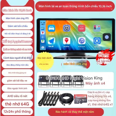 Máy ghi hình lái xe tải 12v, 24v [Kết nối điện thoại di động bốn chiều] Màn hình cảm ứng 10,3 inch + cảnh báo điểm mù + 64G