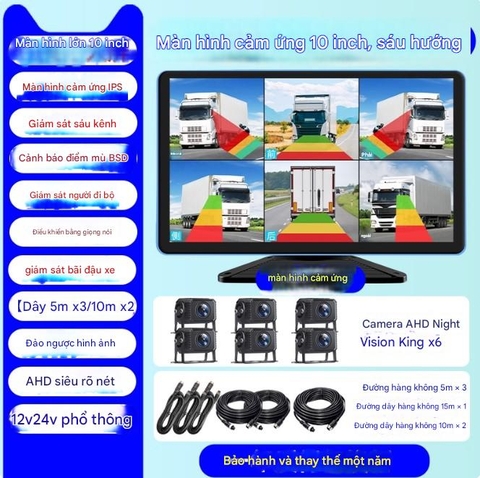 Máy ghi hình lái xe tải 12v, 24v [Sáu hướng] Màn hình cảm ứng siêu nét 10 inch + cảnh báo điểm mù