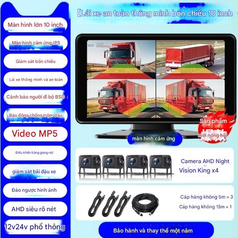 Máy ghi hình lái xe tải giám sát bốn chiều 24v [Bốn chiều] Màn hình cảm ứng 10 inch + cảnh báo điểm mù