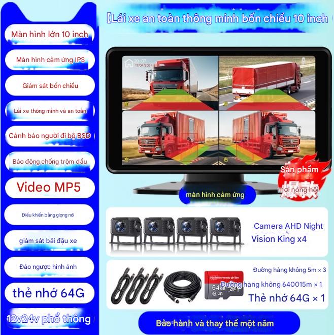 Máy ghi hình lái xe tải giám sát bốn chiều 24v [Bốn chiều] Màn hình cảm ứng 10 inch + cảnh báo điểm mù + 64G