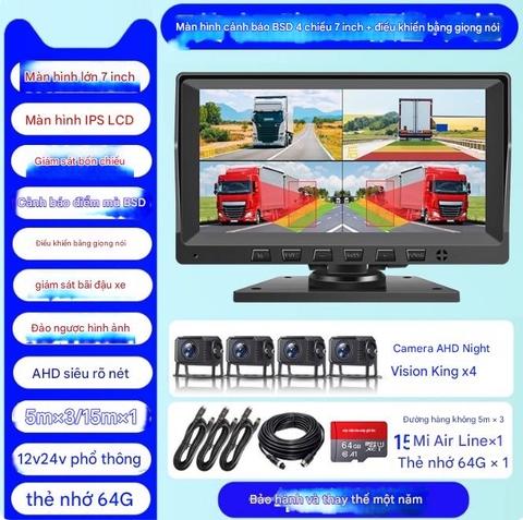 Máy ghi hình lái xe tải giám sát bốn chiều 24v [Bốn chiều] Phiên bản siêu rõ nét 7 inch + Cảnh báo điểm mù + 64G