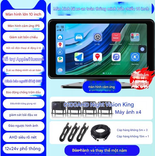 Máy ghi hình lái xe tải giám sát bốn chiều 24v [Kết nối điện thoại di động bốn chiều] Màn hình cảm ứng 10 inch + cảnh báo điểm mù
