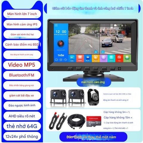 Máy ghi hình lái xe tải giám sát bốn chiều 24v Màn hình cảm ứng 7 inch + cảnh báo điểm mù + Báo động bằng âm thanh và ánh sáng + 64G