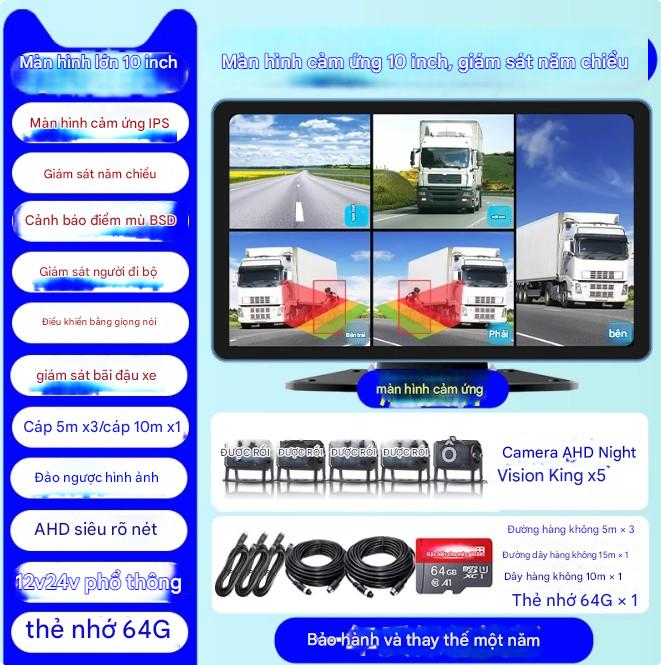 Máy ghi hình lái xe tải giám sát bốn chiều 24v [Năm hướng] Màn hình cảm ứng siêu nét 10 inch + cảnh báo điểm mù + 64G