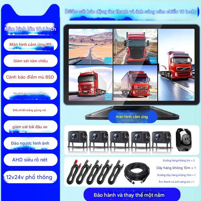 Máy ghi hình lái xe tải 12v, 24v [Năm hướng] Màn hình cảm ứng siêu nét 10 inch + cảnh báo điểm mù + báo động bằng âm thanh ánh sáng