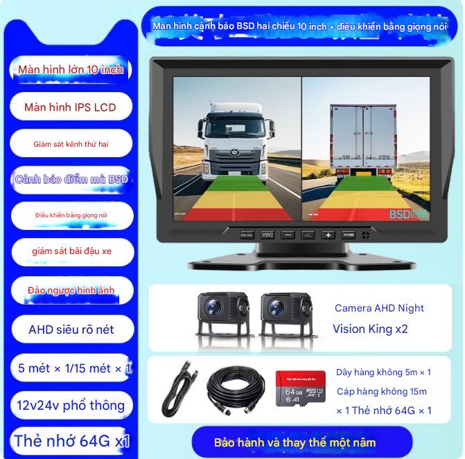 Máy ghi hình lái xe tải giám sát bốn chiều 24v Phiên bản siêu rõ nét 10 inch + Cảnh báo điểm mù + 64G
