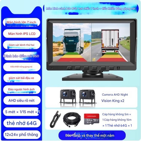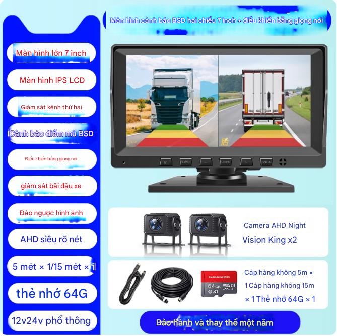 Máy ghi hình lái xe tải giám sát bốn chiều 24v Phiên bản siêu rõ nét 7 inch + Cảnh báo điểm mù + 64G