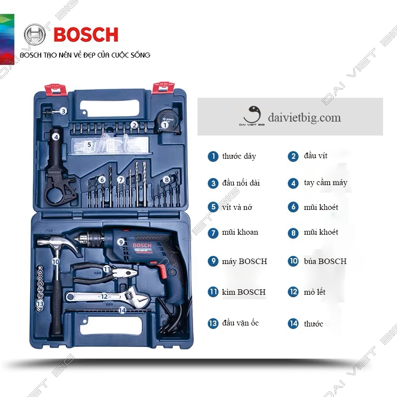 Máy khoan động lực GSB 600 (Bộ 100 món) của Bosch là một bộ công cụ đa năng và đầy đủ, được thiết kế để đáp ứng nhu cầu khoan và vặn vít trong nhiều ứng dụng công việc. Dưới đây là những đặc điểm nổi bật của bộ sản phẩm này: