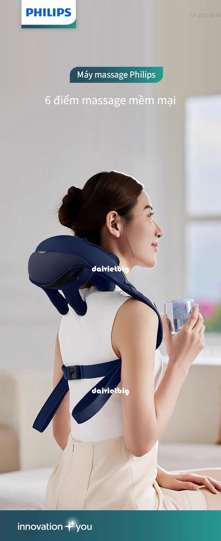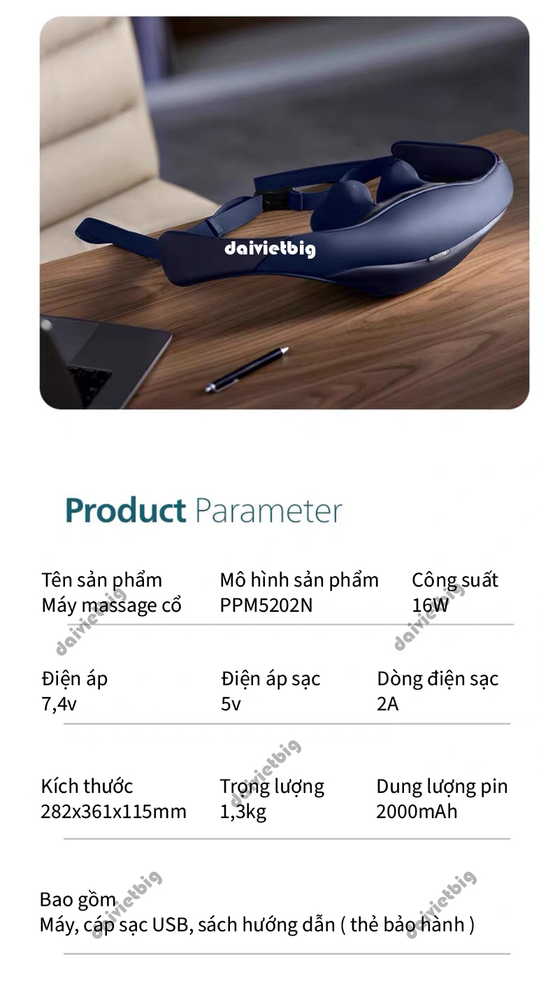 Máy Massage Cổ Vai Gáy PHILIPS PPM5202N,Mô phỏng massage như các đầu ngón tay,6 điểm tiếp xúc ôm sát vùng vai cổ, tác động sâu tới nhóm cơ cầu vai.Mô phỏng massage như các đầu ngón tay,Tạo cảm giác thư giãn chân thực với lực masage mạnh và nhẹ,Mô phỏng các thao tác như bàn tay người, lực massage chuyên sâu như, xoa, bóp, nhấn, mang đến cho bạn cảm giác thư giãn sảng khoái.Thiết kế massage phù hợp cho từng vùng,Dây đai điều chỉnh linh hoạt massage vùng cổ và vai.