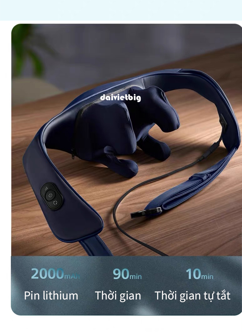 Massage thư giãn đa vùng,Phù hợp mọi đường cong cơ thể,Máy không chỉ massage vùng vai cổ, mà còn dễ dàng điều chỉnh cường độ và vị trí massage bằng cách dùng tay kéo hoặc sử dụng đai khóa cố định, giúp bạn dễ dàng tận hưởng massage thư giãn thoải mái vùng lưng, vai, bắp chân và cánh tay.Thiết kế 3 nút nhấn điều chỉnh, thao tác đơn giản,người cao tuổi sử dụng dễ dàng.Bảng điều khiển chỉ với 3 nút nhấn, thao tác đơn giản, mỗi lần nhấn đều có giọng nói nhắc nhở, người cao tuổi cũng sử dụng dễ dàng Tiết kiệm pin hoạt động liên tục 60-90 phút,Tích hợp dung lượng pin 2000mAh. Mỗi ngày massage 10 phút có thể hồi phục sức sống cho vùng vai và cổ.