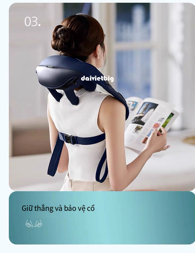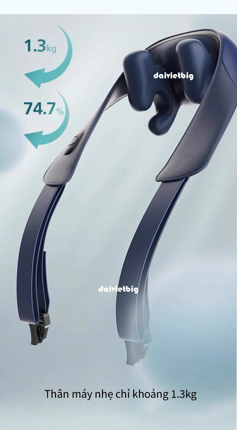 Thiết kế đai đeo gọn nhẹ,Thiết kế thân máy gọn nhẹ,Cấu trúc thân máy cải tiến và tối giản thể tích khoảng 74.7% so với thế hệ trước, đồng thời trọng lượng gọn nhẹ chỉ khoảng 1,3kg, cảm giác nhẹ nhàng, thoải mái khi đeo. Massage thư giãn tạo cảm giác dễ chịu.