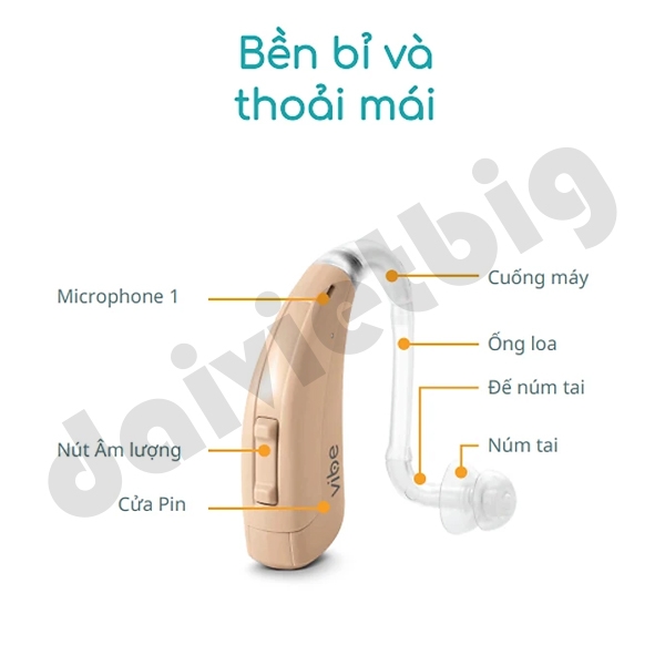 - Máy trợ thính Vibe P4 đeo sau tai với công nghệ của Đức. Cải thiện thính lực trong tầm tay với kích thước vừa phải, đeo phía sau vành tai, có công suất cao, phù hợp với người đeo có mức độ giảm thính lực từ trung bình đến nặng.