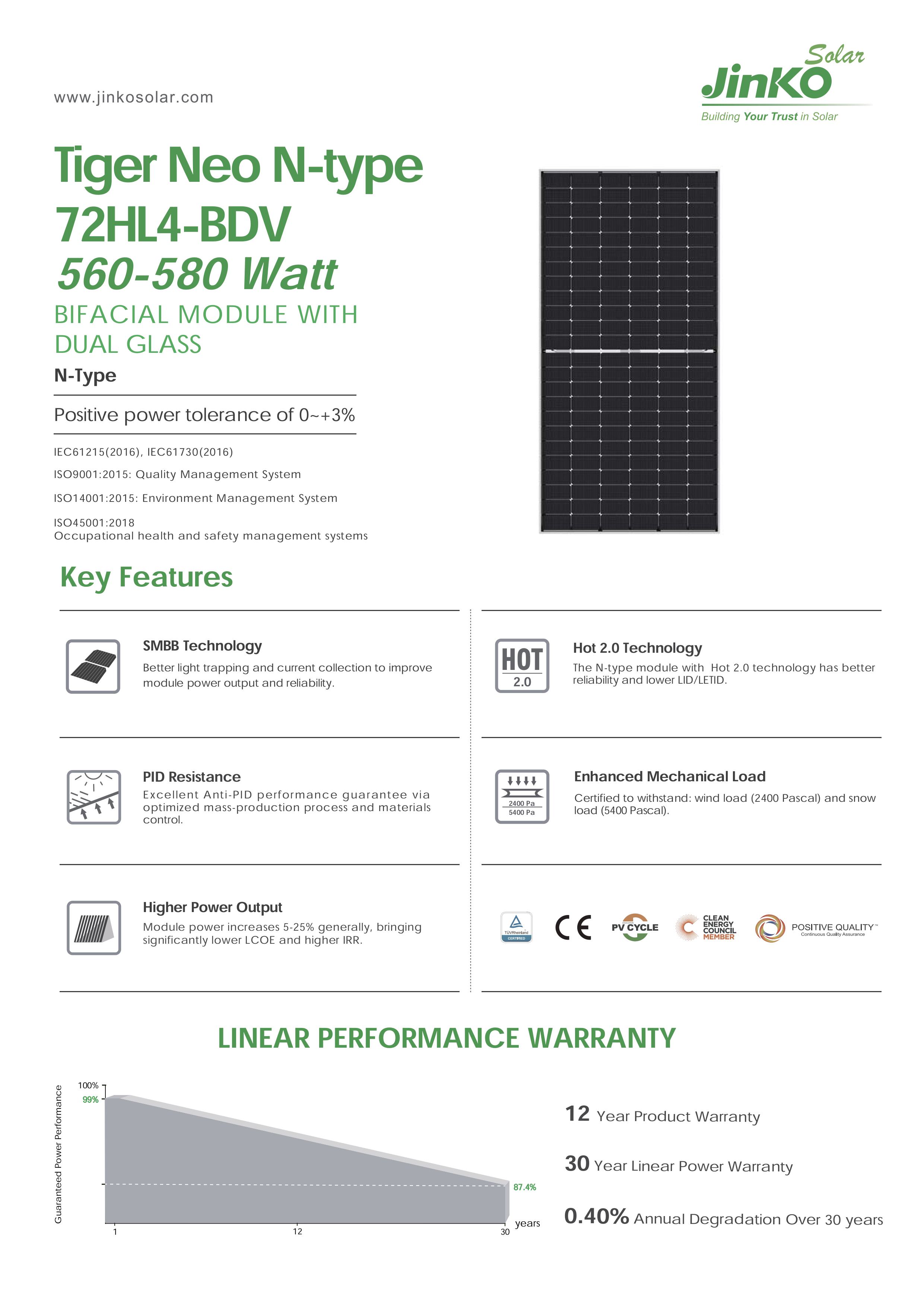 | Tiêu chuẩn chất lượng Pin Jinko 580W | |||