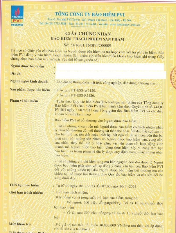 | Theo dõi thông số trực tuyến | Ứng dụng PTESS Cloud |