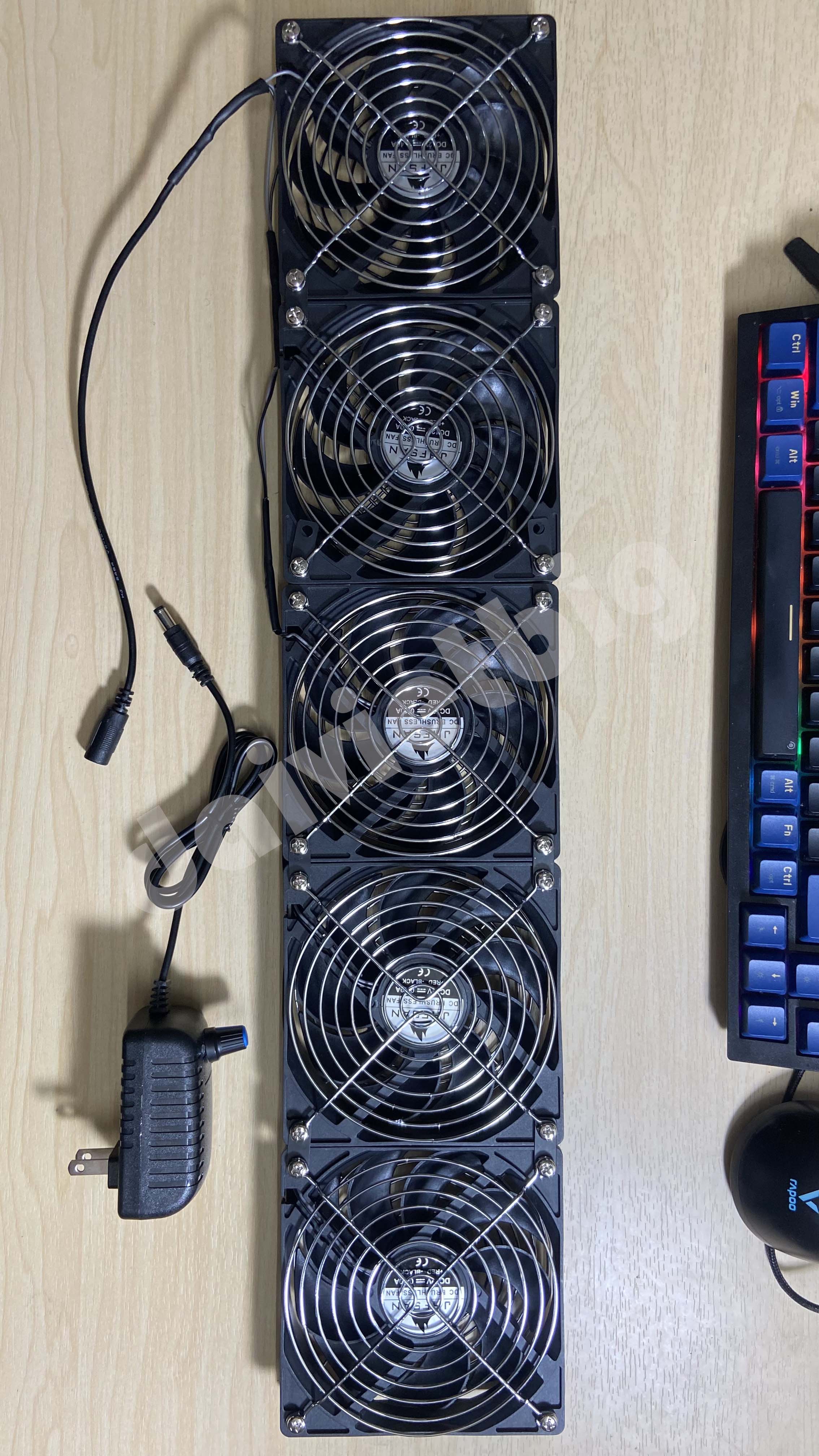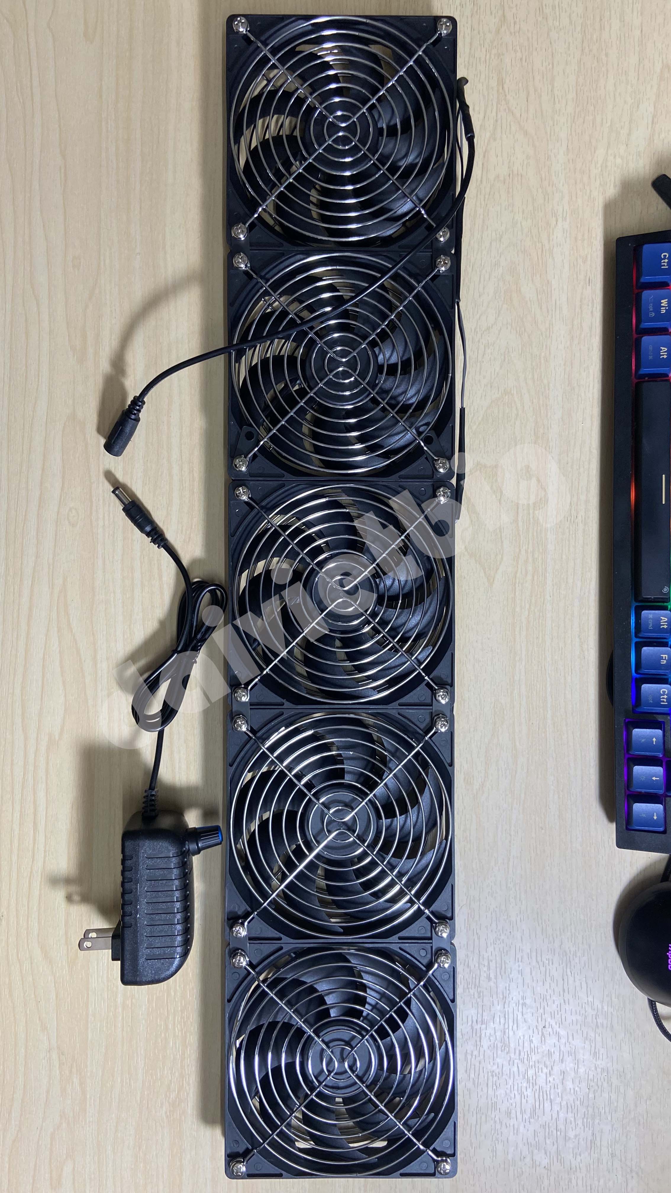 Trang bị 5 quạt 12x12cm nối liền trên khung kim loại dài 60cm, thiết bị mang lại lưu lượng gió lớn, tản nhiệt diện rộng, phù hợp cho: