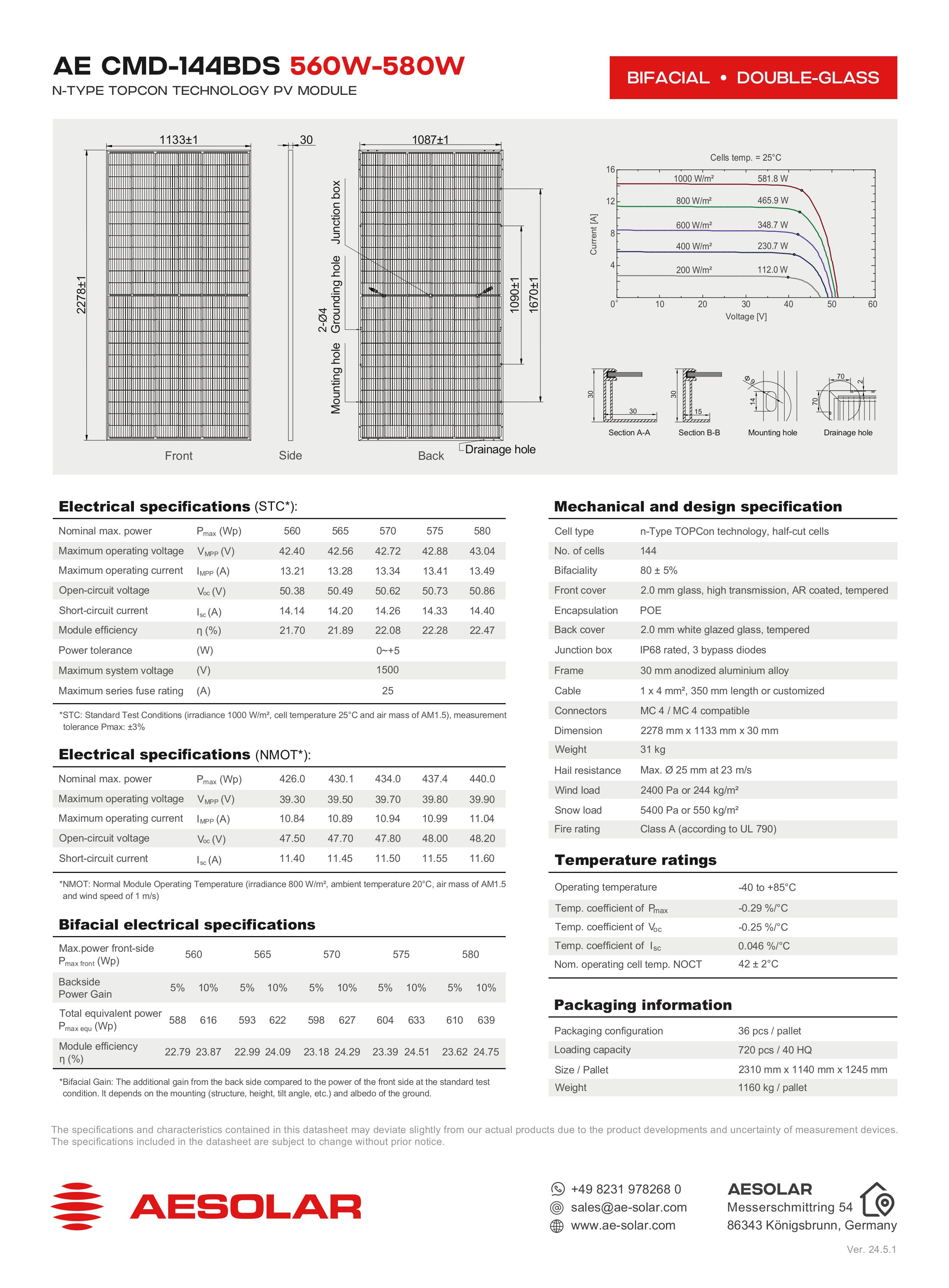 ☀️ TẤM PIN MẶT TRỜI AE 580W LOẠI A – 2 MẶT KÍNH (DUAL GLASS)