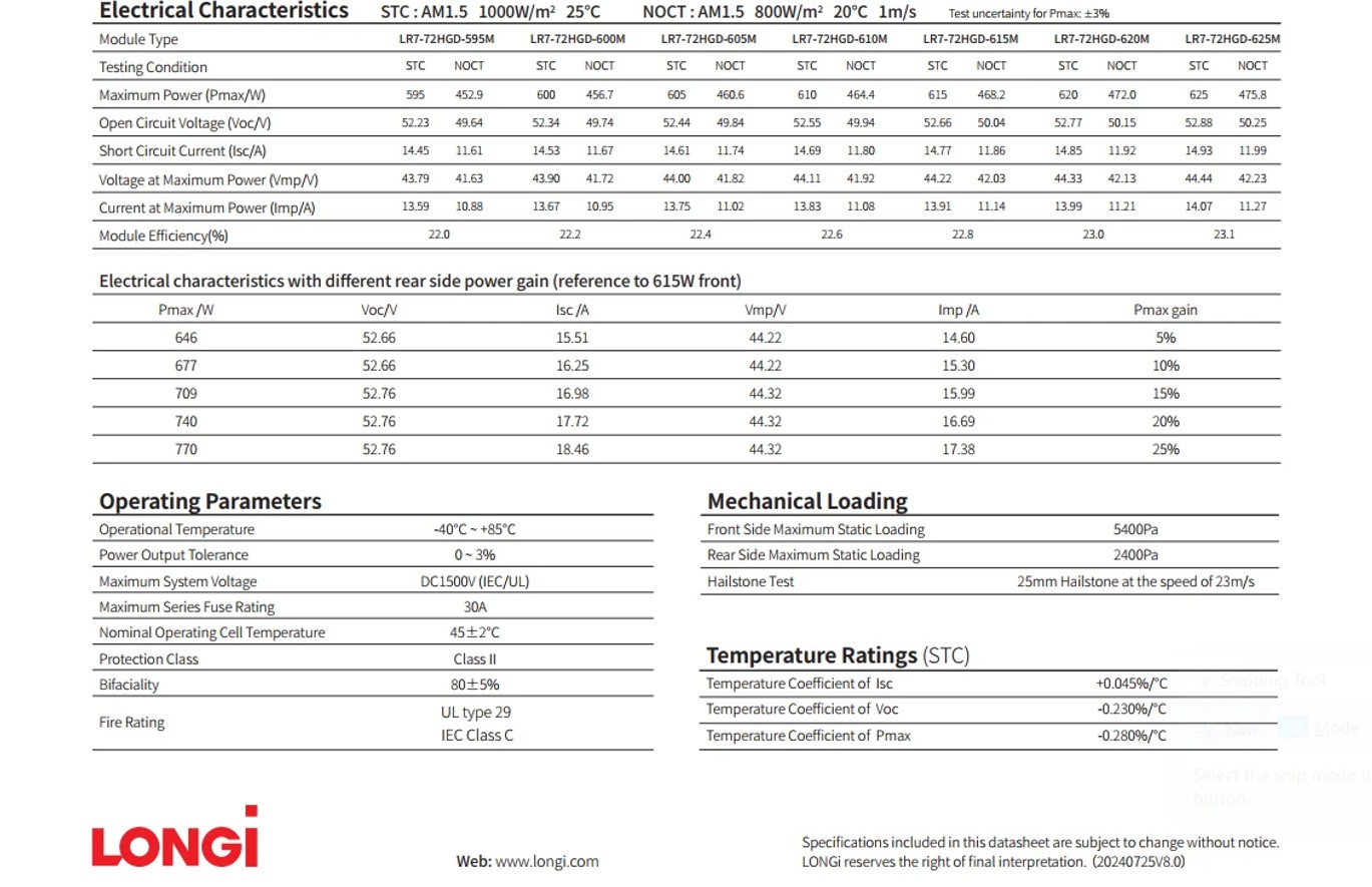 Hệ số nhiệt độ thấp: Với hệ số -0.26%/°C, Hi-MO 9 hoạt động ổn định ngay cả trong điều kiện nhiệt độ cao.