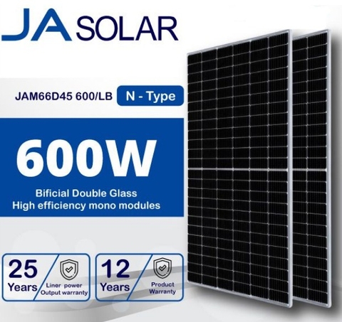 Tấm Pin Năng Lượng Mặt Trời JA 600 N-type|JAM66D45 600/LB - Giải Pháp Năng Lượng Hiệu Quả