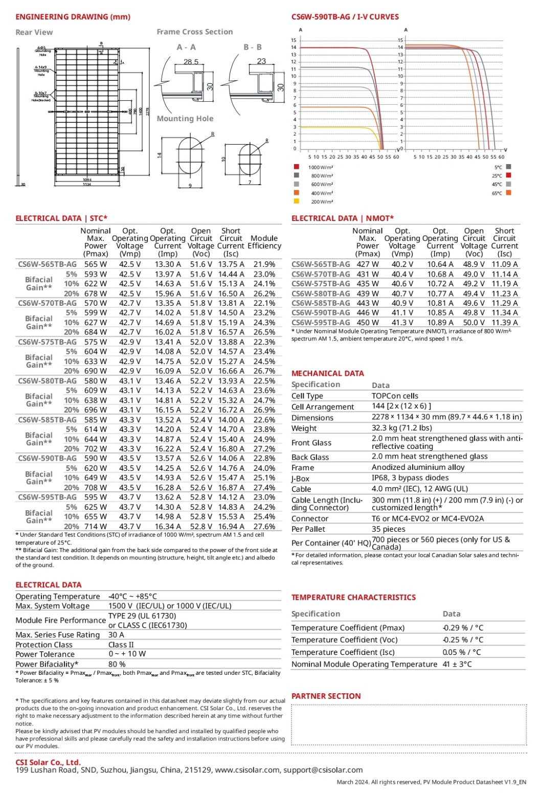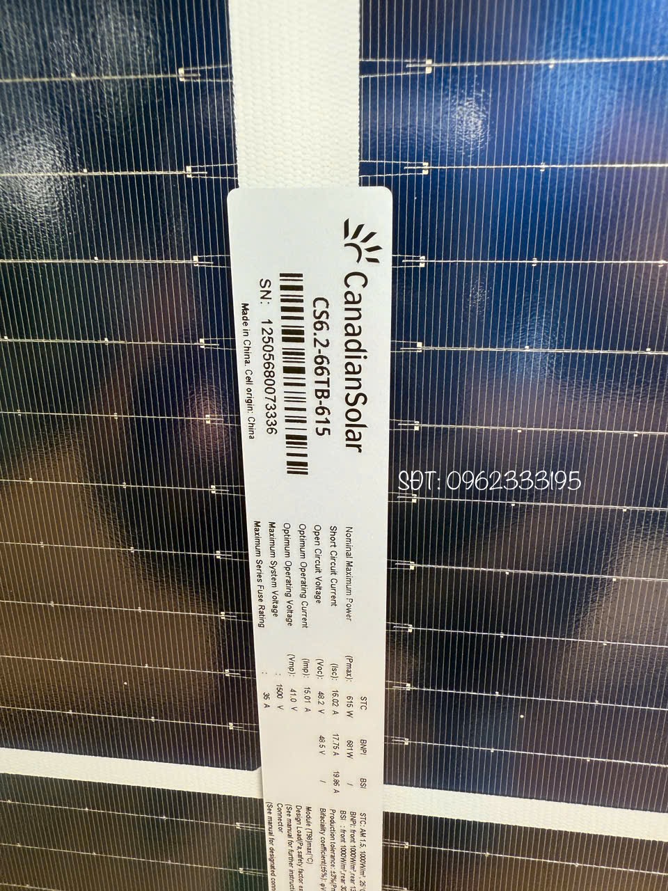 Thông số kỹ thuật của tấm pin mặt trời Canadian 620W