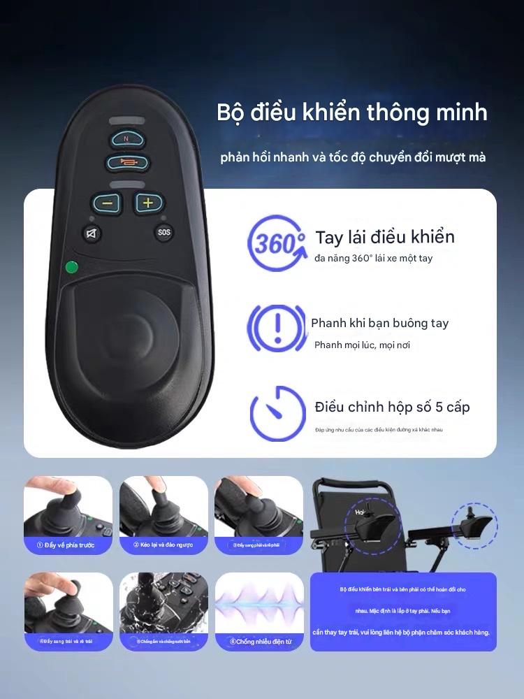 • Động cơ kép 500W, mạnh mẽ, hỗ trợ di chuyển trên nhiều loại địa hình.